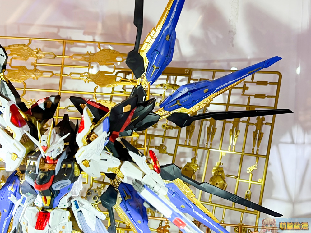 官方表示此展示品為試作品並經過塗裝加工,可能與實際商品有所不同,雖然組裝完成的試作品可感受到金色有不同的變化,但感覺部分金色零件的塑膠質感不少處依舊偏重。