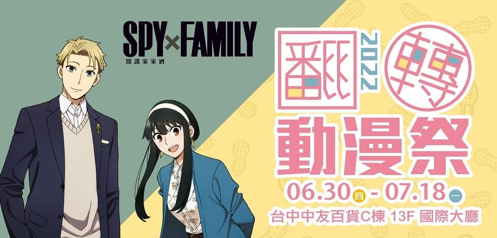木棉花宣布,旗下動漫系列巡迴活動「翻轉動漫祭」,確定舉辦第5屆台中場「翻轉動漫祭 2022台中」,將自6月30日起於中友百貨開展,並預定販售《SPY×FAMILY間諜家家酒》話題周邊。