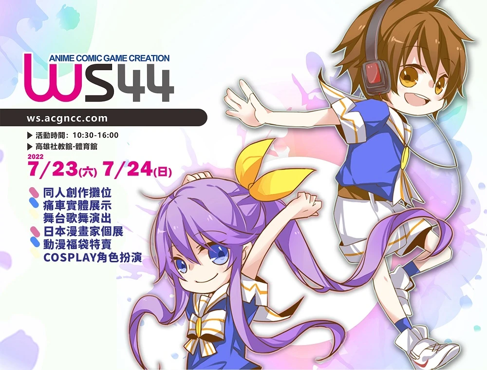 「Wing Stage永集動漫遊戲展44 (WS44)」從7月23日-24日,在高雄社教館-體育館舉辦。