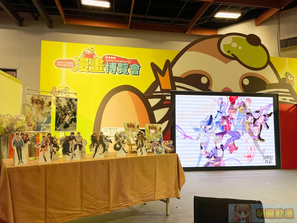 2022漫畫博覽會首(28)日, BL 手遊《新世界狂歡》與台灣角川在漫博首賣首本遊戲設定集,並在大會A舞台舉辦限定舞台活動「夏日狂歡祭」,除展示實體設定集、小人形立牌等特色周邊外,亦邀請Coser化身遊戲角色,再現許多臉紅心跳的橋段。