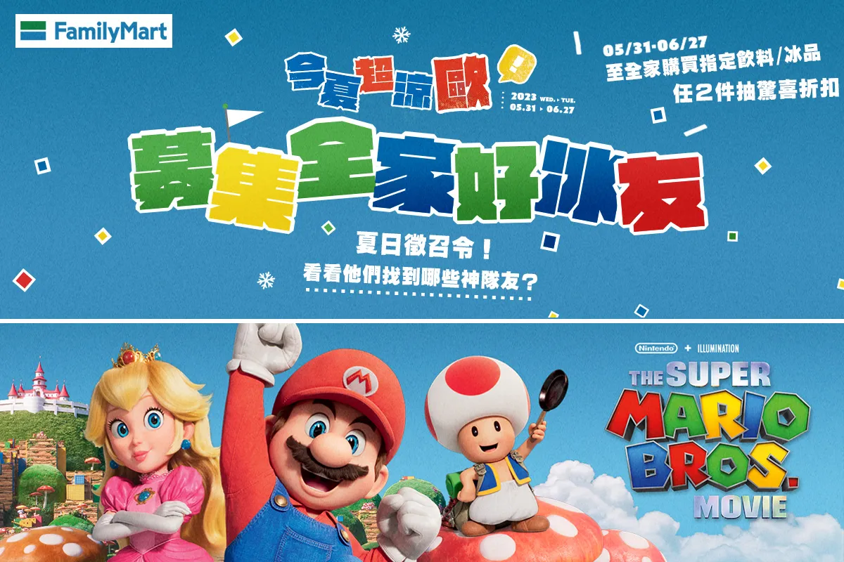 FamilyMart 全家便利商店 X 《超級瑪利歐兄弟電影版》,飲料冰品加價購、聯名商品已自5月31日起推出。