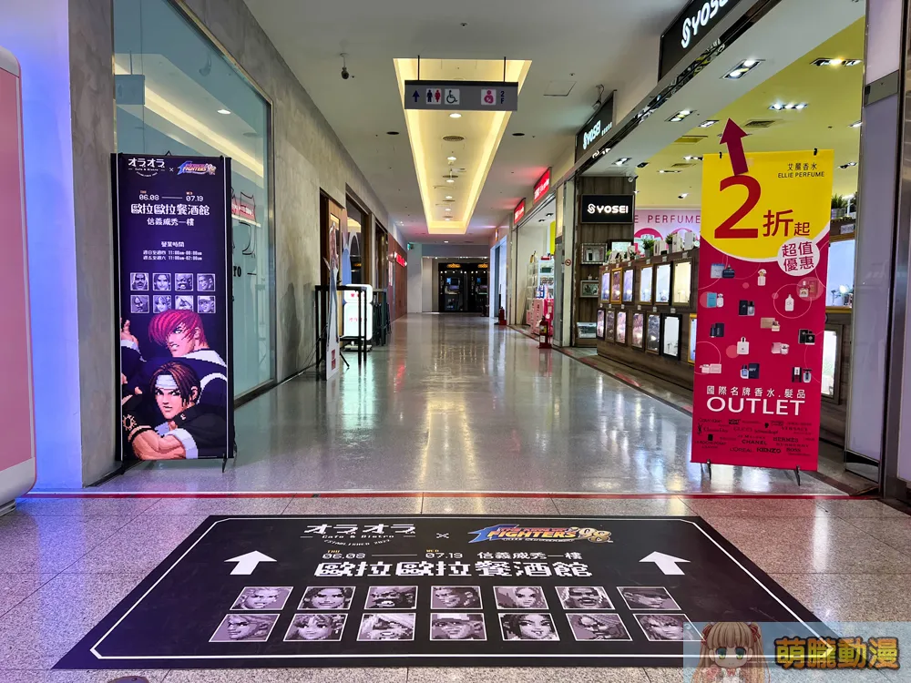 「《拳皇 ’98》× 歐拉歐拉オラオラ」店內外嘗試營造出遊戲氛圍,除有許多讓人熟悉的角色化身立牌外,還展示了《拳皇’98》正版授權復古街機。