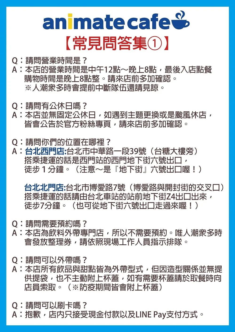 活動地點: animate cafe 台北西門店(台北市中正區中華路39號