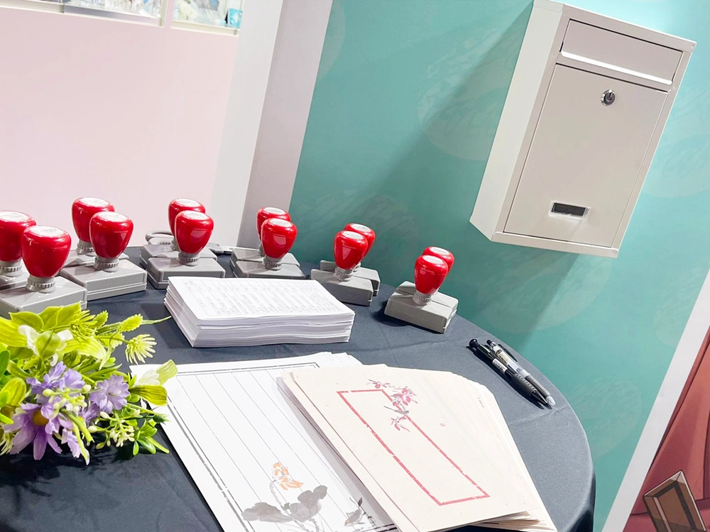 而《共生邱比特 -Sweet & Spicy Darling.-》打卡牆旁也設置了一個「乙女部心願郵箱」,經過攤位的粉絲可投入感謝信,GSE官方將親自把這些心意書信送交給每位收件人。