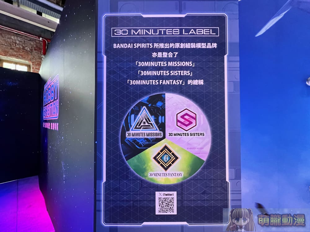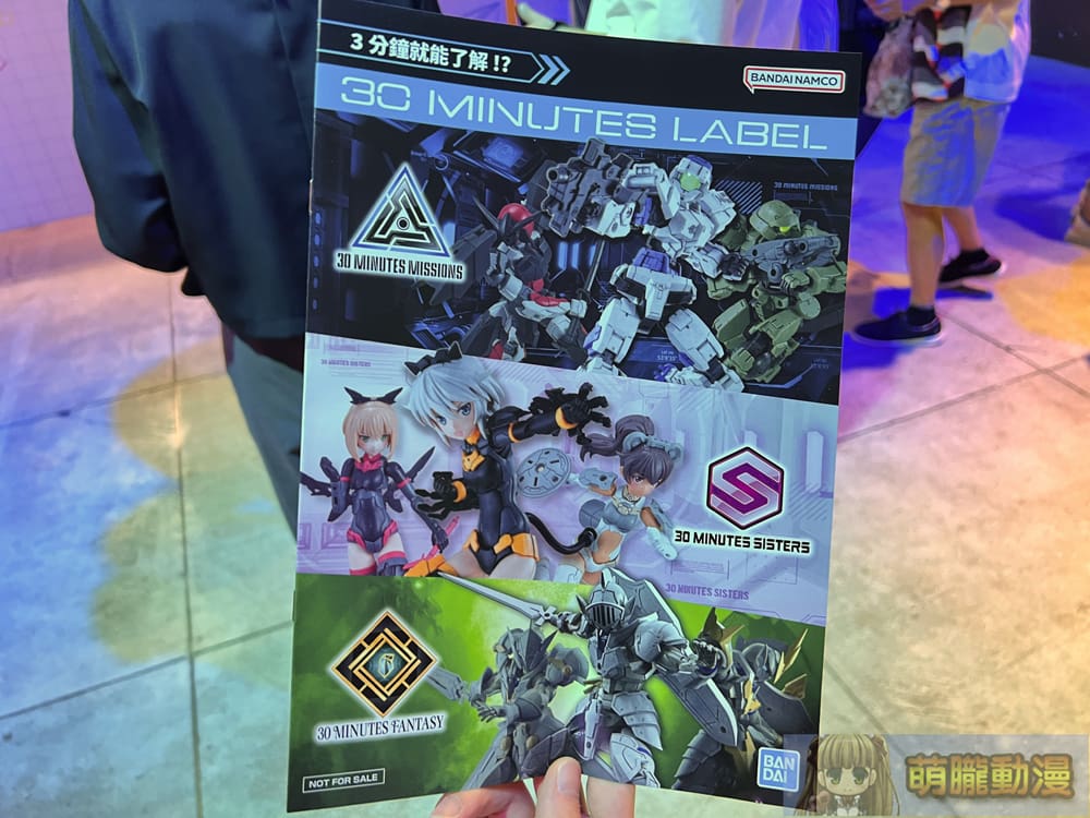 本次展覽也將展出萬代原創組裝模型品牌 30 MINUTES LABEL(通稱 30ML),由 30 MINUTES MISSIONS(通稱 30MM 組裝模型輕作戰)、30 MINUTES SISTERS(通稱 30MS 組裝少女輕作戰)以及全新系列 30 MINUTES FANTASY(通稱 30MF 組裝奇幻角色輕作戰)組成,可透過多種改裝方式,創造出屬於自己獨一無二的作品。