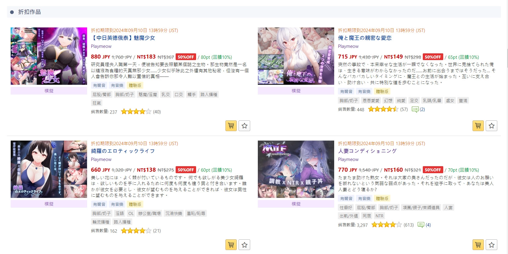 「PlayMeow Games」DLsite優惠活動,至9月10日 12:59 為止(台灣時間)。