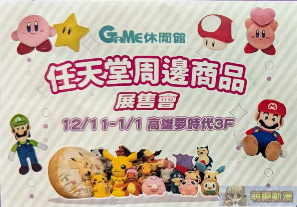 Game休閒館任天堂周邊商品展售會 12月11日起於高雄夢時代舉辦萌朧雪猴2024 年 11 月 30 日活動新訊/報導 Game休閒館宣傳DM公開多個活動資訊,其中「Game休閒館任天堂周邊商品展售會」,將自12月11日起在高雄夢時代舉辦。 「Game休閒館任天堂周邊商品展售會」,從2024年12月11日-2025年1月1日,在高雄夢時代3樓舉辦。 Game休閒館 FB粉絲專頁 廣告 標籤# Game休閒館# 任天堂