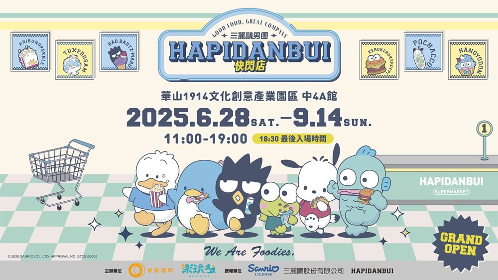 由楽玩多WAYTOFUN主辦,《三麗鷗男團HAPIDANBUI》全台首場快閃店:「三麗鷗男團HAPIDANBUI快閃店」將於6月28日起,在臺北華山1914文化創意產業園區開設。