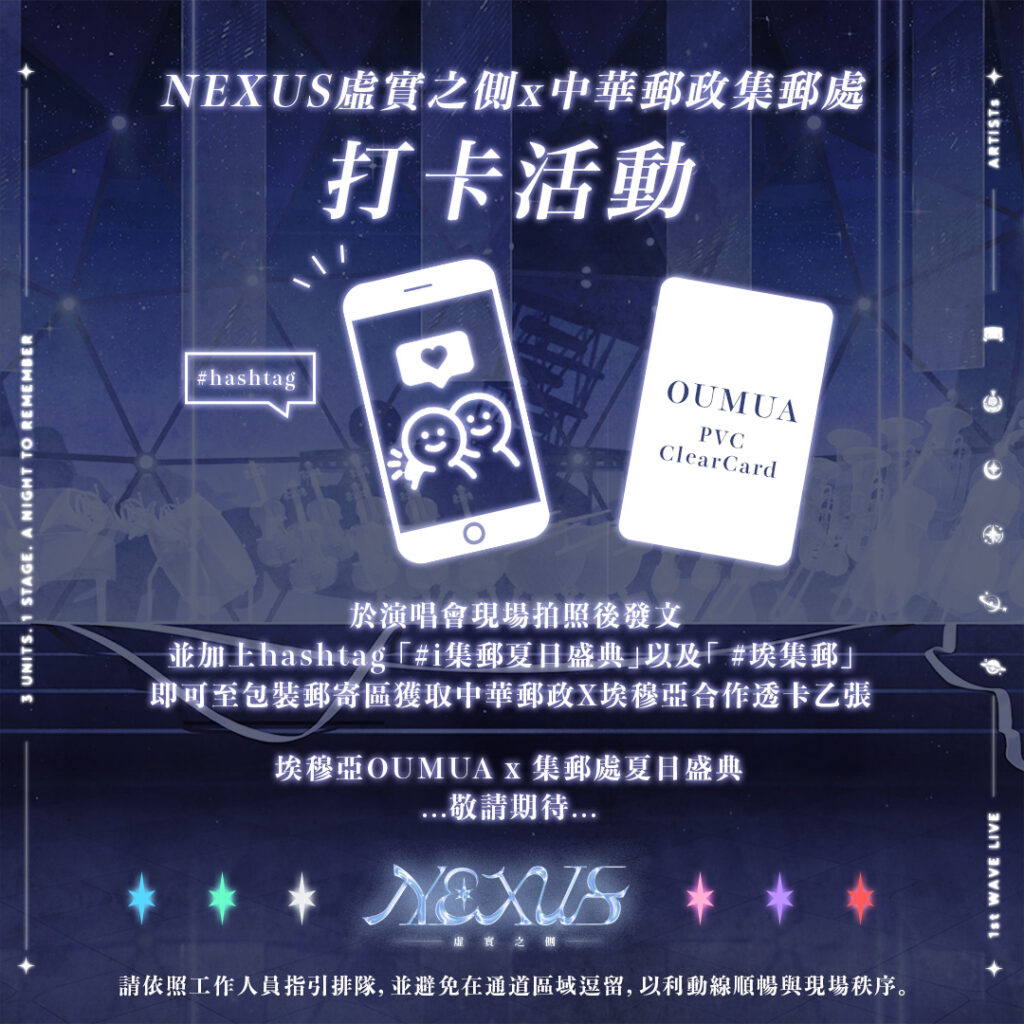 目前「埃穆亞X集郵處夏日祭典」先行活動,會是於「2025 NEXUS虛實之側 SPRINGFISH CONCERT」完成活動打卡活動後,可兌換合作透卡,更多活動詳情將陸續公開。
