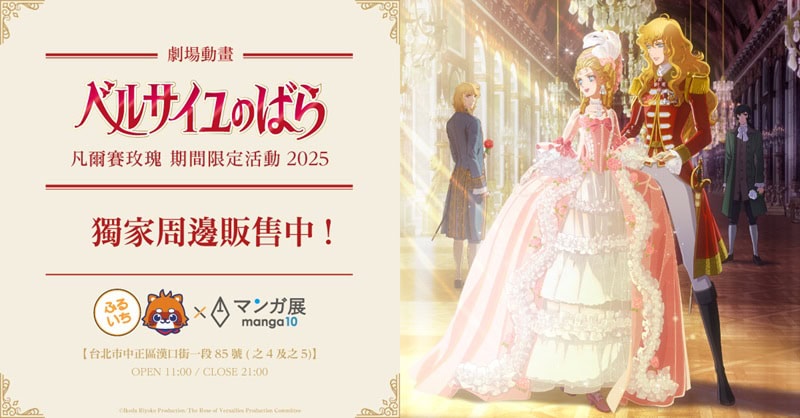 將自7月12日起在台北西門町開設的「ふるいち ×漫畫展(manga10)」,開幕首日將同步舉辦「劇場版動畫《凡爾賽玫瑰》期間限定活動2025」。