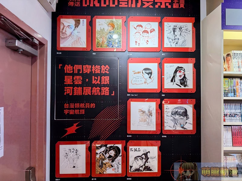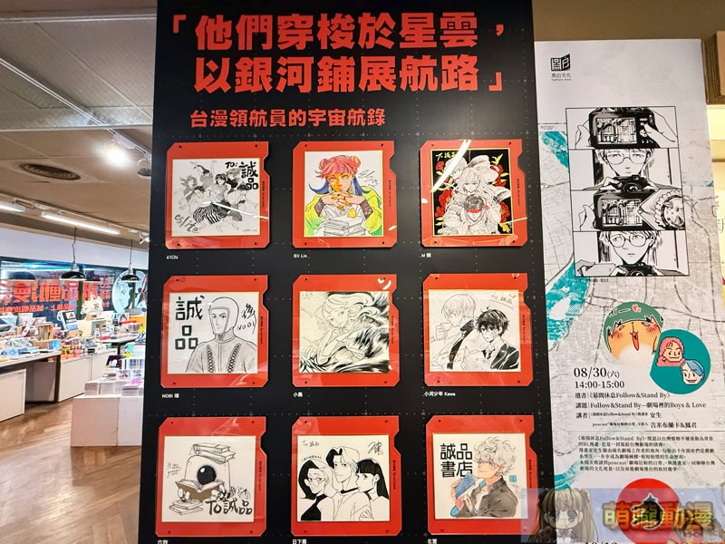 同時誠品R79也首次打造「動漫宇宙」輕漫專區,匯聚潮流輕小說及漫畫作品,此區也展示了許多台漫主題創作者的簽名板。