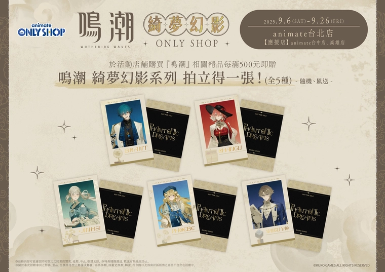 鳴潮 ×animate 綺夢幻影系列全新周邊企劃 預定推出萌朧雪猴2025 年 8 月 27 日模型周邊 Animate 台北店公開《鳴潮》最新周邊企劃「鳴潮 ×animate 綺夢幻影系列」主視覺,並將於日後陸續公開情報,更多資訊可留意Animate 台北店FB。 Animate 台北店FB 廣告 標籤# animate台灣# 快閃店# 鳴潮