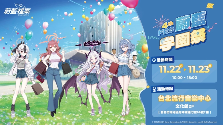《蔚藍檔案》4週年慶典「蔚藍檔案學園祭」, 將於11月22-23日在台北南港流行音樂中心文化館舉辦。
