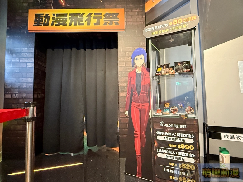 此外i-Ride 飛行劇院目前也有上映《進擊的巨人:開戰宣言》,同樣可在場內看到主題布景與購買周邊。