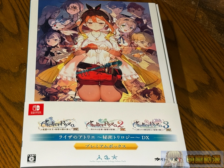 移除上層後,可以看到是《萊莎的鍊金工房 ~秘密三部曲~ DX》Nintendo Switch 特典版,盒外的封套有點小巧思,稍微往下拉就能讓萊莎的蜜大腿露出來,這也是實體開箱才有的樂趣。