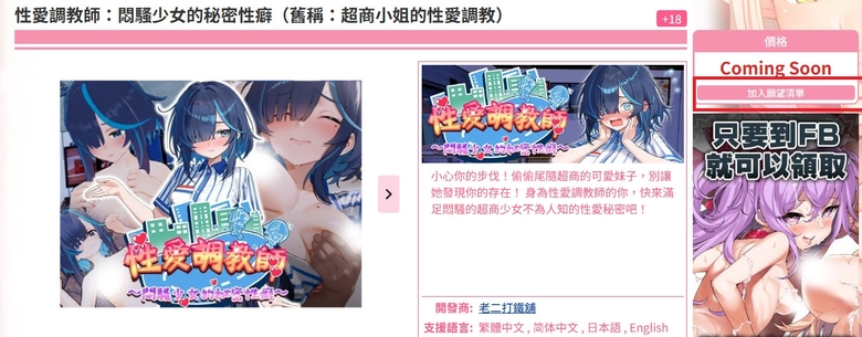 以「打造出讓玩家老二千錘百鍊的瑟瑟遊戲」為團隊宗旨的台灣紳士遊戲開發團隊「老二打鐵舖」,《性愛調教師:悶騷少女的秘密性癖》為團隊旗下的首款作品《性愛調教師:悶騷少女的秘密性癖》,並參展「2025 G-EIGHT 遊戲展」且拿下「最佳新人獎」的獎項。
