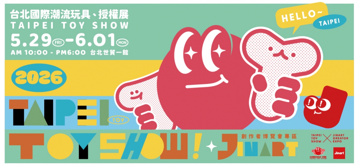 2026台北國際潮流玩具、授權展與 JINART 創作者博覽會,將於 5 月 29 日至 6 月 1 日,在台北世貿一館盛大舉行。這次展覽結合了兩大盛會,將為玩具愛好者帶來豐富的視覺享受。