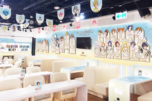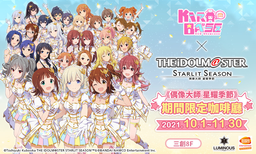 主題咖啡廳以家用主機新作《偶像大師 星耀季節》打造場景,可見到穿著中文版限定服裝的大型偶像立牌,牆上也將一次展示特別團體 Project LUMINOUS 中的 29 位偶像,並在店內舞台及拍照區重現偶像登場的華麗舞台。