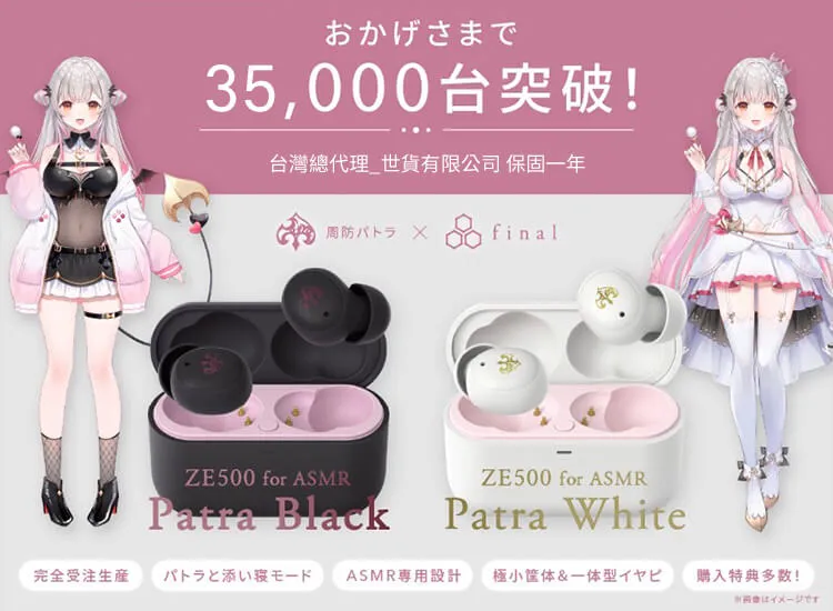 VTuber「周防帕特拉」與final聯名的第四彈商品「VR1000 for ASMR Patra White/Patra Black」,確定將由世貨有限公司代理入台,並公開預購資訊。