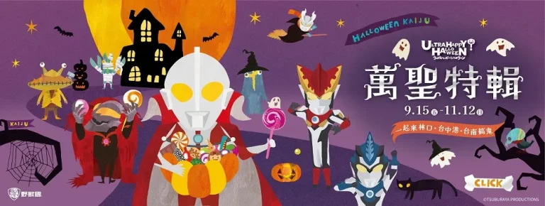 MITSUI OUTLET PARK配合萬聖活動,至11月12日於林口、台中港及台南打造不同的超人力霸王「萬聖特輯」造景,以下為各點相關資訊
