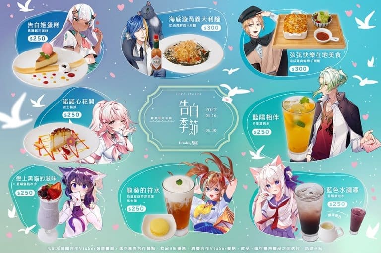 ACG文化合作主題店KIRABASE,近期公開將推出台灣Vtuber 最新快閃主題「告白季節」,將自5月16日起在KIRABASE台北、高雄及桃園3店舉辦,並釋出了Ikusen、巴蘭利維坦、百目鬼九姬、弦戶帝丹、斜胖、諾櫻、龍葵、瀰婭等8位合作台灣Vtuber參展情報。