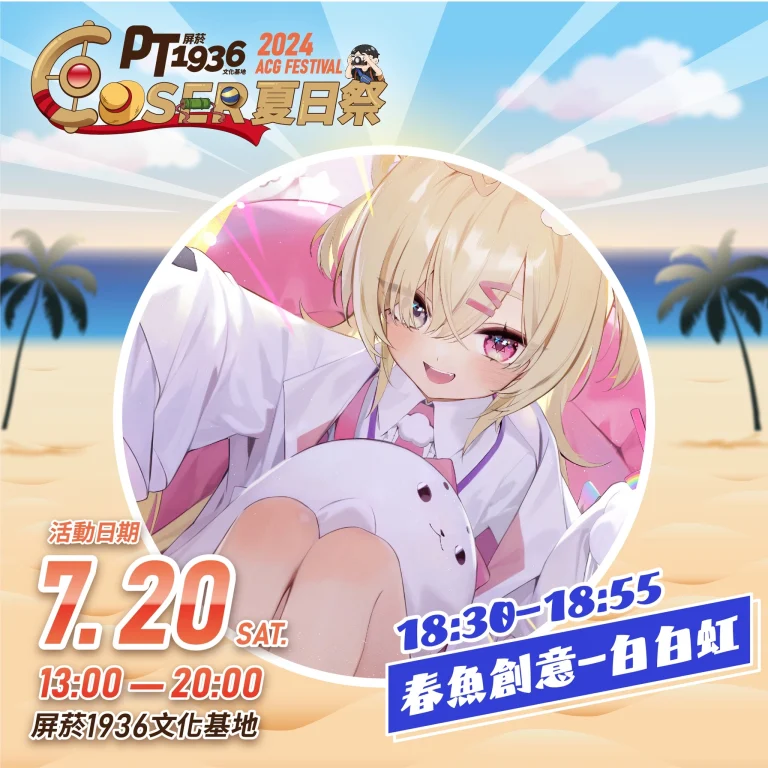 將於7月20日在屏菸1936文化基地舉辦的「2024屏菸COSER夏日祭」,主辦單位公開完整表演名單,其中18:30-18:55,將邀請到春魚創意「瑟拉斯蒂歐」所屬Vtuber「白白虹」參與演出。