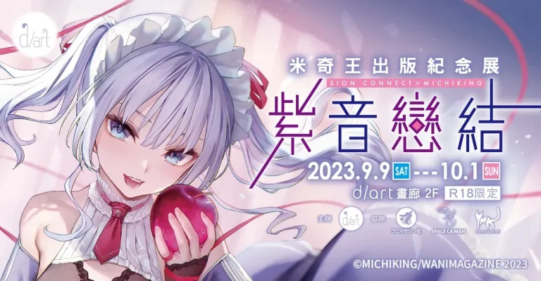 d/art宣布,配合米奇王(みちきんぐ) 作品《紫音戀結 米奇王作品集》無修正繁中版在9月販售,特別規劃「紫音戀結 米奇王出版紀念展」,預定展售「シオンコネクト」商品,並搭配書中畫作展示。