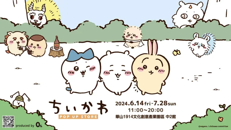 由大鴻藝術主辦,於0% Taipei粉絲專頁公開的吉伊卡哇最新快閃店「Chiikawa POP UP STORE 台北」,將於6月14日起在華山文創開設。