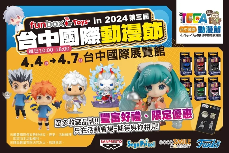 日本模型商GSC宣布與Funbox Toys麗嬰國際共同參展2024台中國際動漫節,並公開了展場限定品、活動好禮等情報。