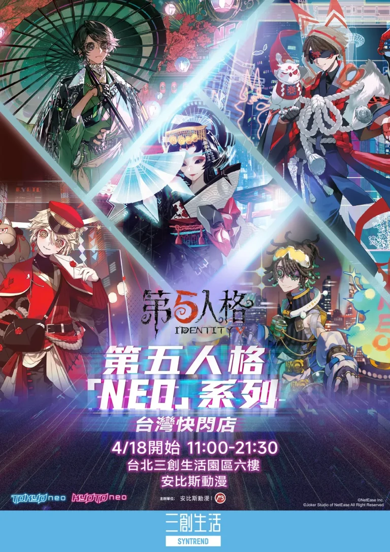 安比斯動漫(Abyss 動漫)公開新一期主題快閃店,將自4月18日起舉辦「第五人格『NEO系列』台灣限定快閃店」,將販售壓克力立牌、文件夾等周邊,以下為相關資訊。