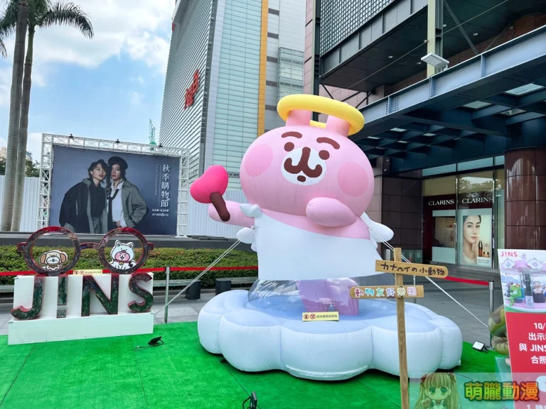 日本連鎖眼鏡品牌JINS呼應環境友善及動物平權,打造了「動物友好樂園」大型裝置,並加入了經典的卡娜赫拉主題,希望讓更多人關注動物、寵物生存權利,台中巡迴場正於台中新光三越廣場展示中。