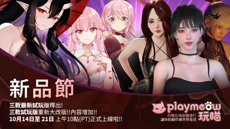 Playmeow玩喵宣布參與Steam 10月9日起開跑的新品節,將推出《惡靈寄生》、《索命倒數-背德的欲望清單》、《眼眸之城》、《魔界少女與奴隸召喚術》、《劉嬋養成計畫》等5款遊戲試玩版。